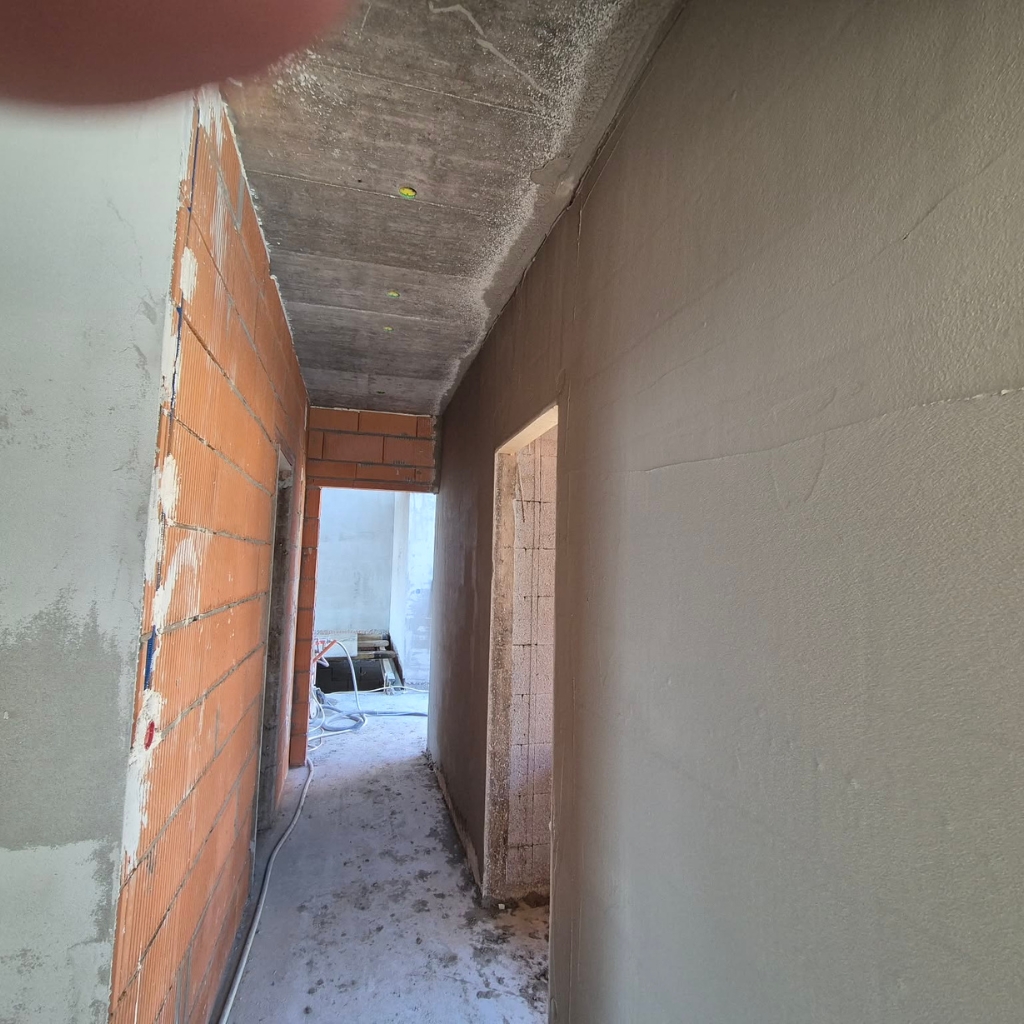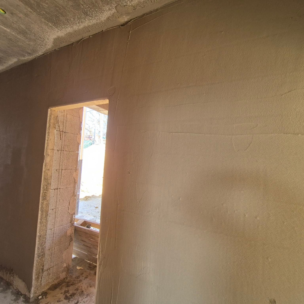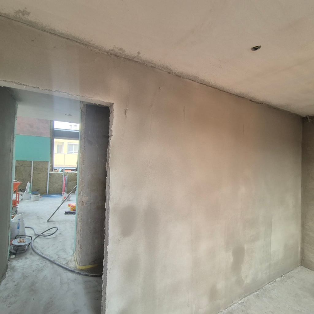 Lézeres szintezés és homogén anyagfelvitel garantálja a tökéletesen egyenes, repedésmentes falakat.