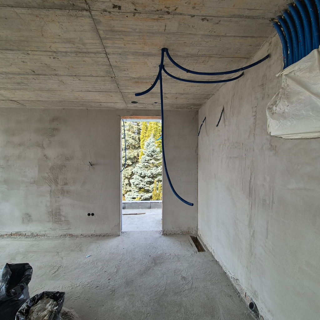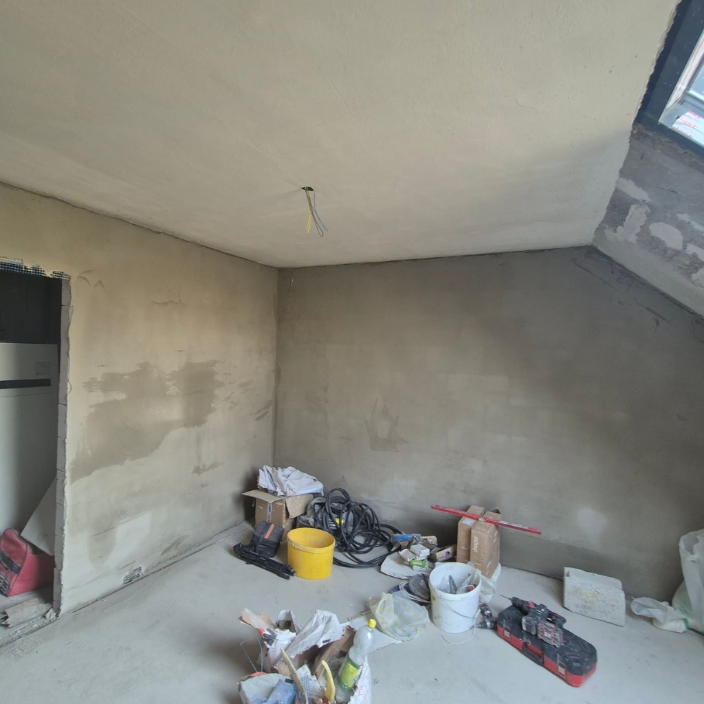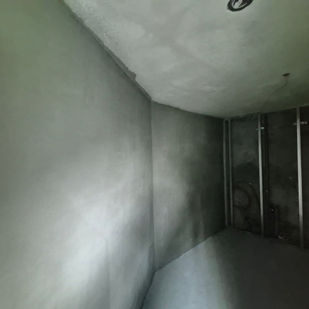 Lézeres szintezés és homogén anyagfelvitel garantálja a tökéletesen egyenes, repedésmentes falakat.